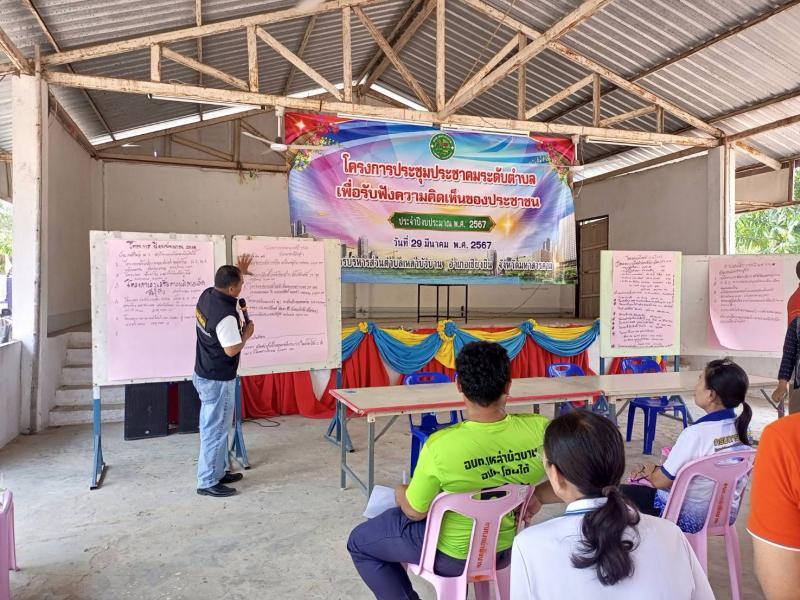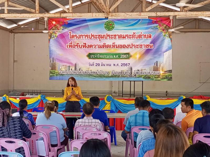 รายละเอียด : เมื่อวันที่ 29 มีนาคม 2567 นายวิเชียร สีหาพุด นายกองค์การบริหารส่วนตำบลเหล่าบัวบาน ได้จัดเวทีประชุมประชาคม ระดับตำบล เพื่อรับฟังปัญหาความต้องการของประชาชน เพื่อใช้เป็นข้อมูลในการจัดทำแผนพัฒนาท้องถิ่น และอนุมัติงบประมาณรายจ่ายเพื่อแก้ไขปัญหาให้กับพี่น้องประชาชน