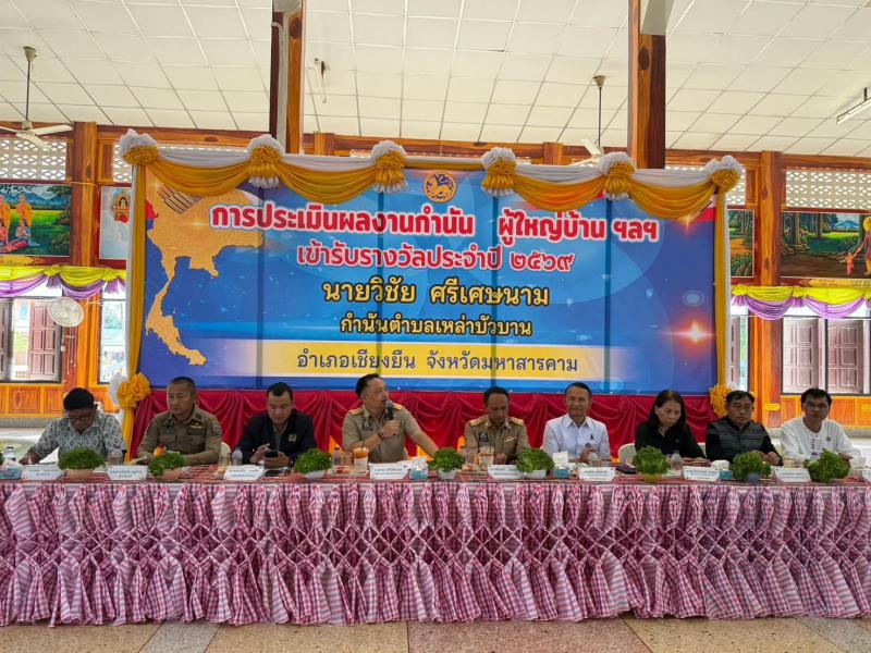 description โดยได้รับเกียรติจาก นายกนก ศรีวิชัยนันท์ รองผู้ว่าราชการจังหวัดมหาสารคาม ประธานคณะกรรมการ พร้อมด้วย นายสัมฤทธิ์ หน่อแก้ว ปลัดจังหวัดมหาสารคาม และคณะกรรมการฯ ในการลงพื้นที่เพื่อพิจารณาคัดเลือก นายวิเชียร ศรีเศษนาม กำนันตำบลเหล่าบัวบาน เข้ารับรางวัลกำนันยอดเยี่ยม ประจำปี ๒๕๖๙ กิจกรรมภายในงานประกอบด้วย: การนำเสนอผลงานเชิงประจักษ์: การแถลงผลการปฏิบัติงานในรอบปีของกำนัน ผู้ใหญ่บ้าน และคณะทำงานตำบลเหล่าบัวบาน ที่มุ่งเน้นการบำบัดทุกข์ บำรุงสุขให้แก่พี่น้องประชาชน นิทรรศการภูมิปัญญาท้องถิ่น: การจัดแสดงผลิตภัณฑ์และองค์ความรู้จากภูมิปัญญาชาวตำบลเหล่าบัวบาน เพื่อส่งเสริมเศรษฐกิจฐานราก วิถีพอเพียงและพลังเยาวชน: ชมการแสดงจินตลีลาจากนักเรียนโรงเรียนบ้านหนองล่าม พร้อมเยี่ยมชมฐานเรียนรู้ "แปลงยุวเกษตร" พืชผักสวนครัว และฟาร์มไก่ไข่ ตามหลักปรัชญาเศรษฐกิจพอเพียง person admin