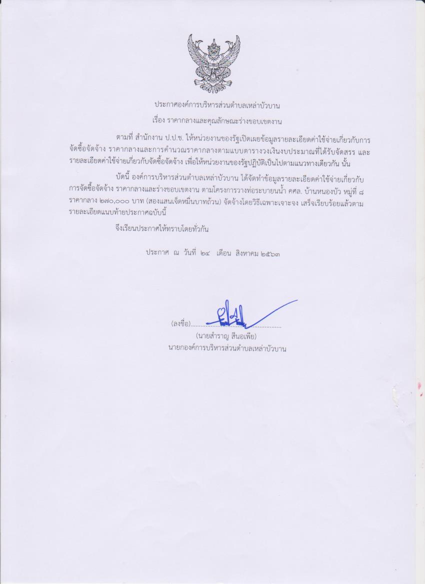 โครงการวางท่อระบายน้ำ คสล.บ้านหนองบัว หมู่ที่ 8
