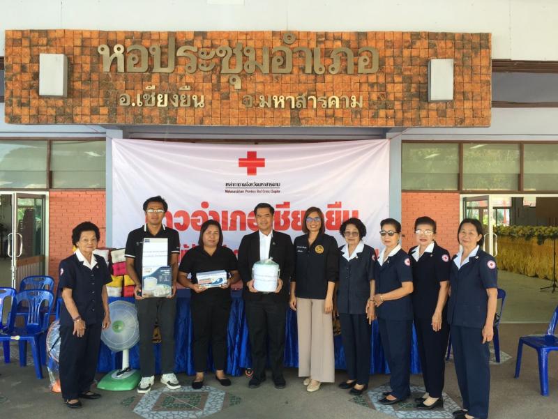 นายเทพอมร ประยูรชาญ ปลัด อบต. ปฏิบัติหน้าที่นายก อบต. ที่มอบสิ่งของสนับสนุนงานกาชาดจังหวัดมหาสารคาม เชิญร่วมบริจาคทรัพย์หรือสิ่งของ ในงานบุญเบิกฟ้าและกาชาดจังหวัดมหาสารคาม 2569 19 ธันวาคม 2568 หอประชุมอำเภอเชียงยืน