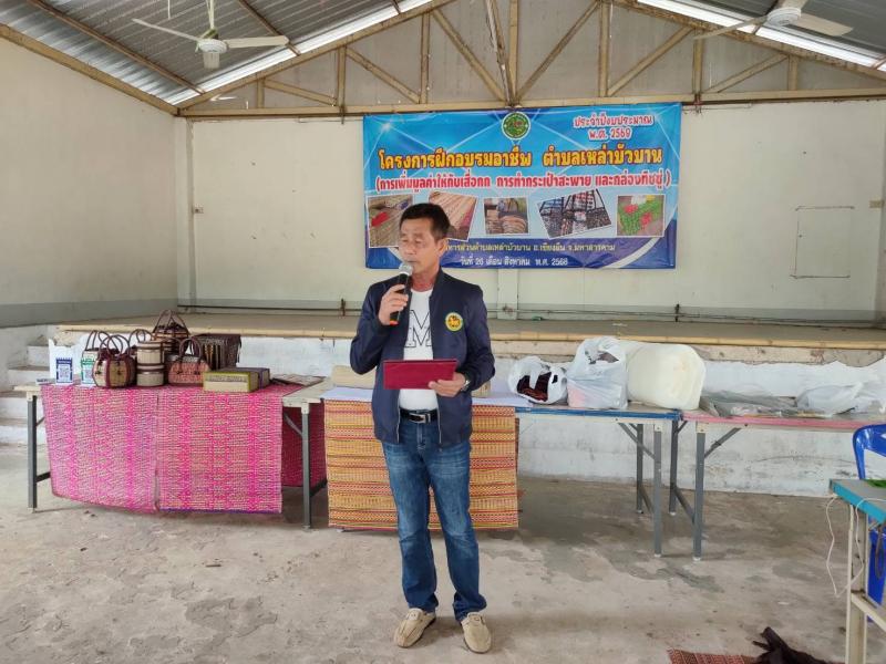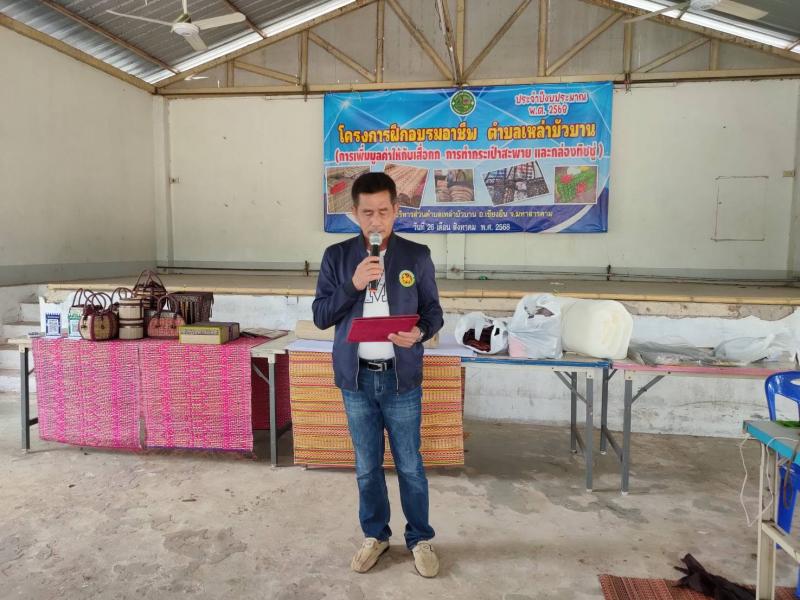 ประชาสัมพันธ์โครงการฝึกอบรมอาชีพ ตำบลเหล่าบัวบาน ประจำปีงบประมาณ พ.ศ.2568 (การเพิ่มมูลค่าให้กับเสื่อกก การทำกระเป๋าสะพายและกล่องทิชชู่) โดยนายวิเชียร สีหาพุด นายกองค์การบริหารส่วนตำบลเหล่าบัวบาน เป็นประธานเปิดโครงการ