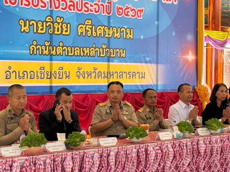 description โดยได้รับเกียรติจาก นายกนก ศรีวิชัยนันท์ รองผู้ว่าราชการจังหวัดมหาสารคาม ประธานคณะกรรมการ พร้อมด้วย นายสัมฤทธิ์ หน่อแก้ว ปลัดจังหวัดมหาสารคาม และคณะกรรมการฯ ในการลงพื้นที่เพื่อพิจารณาคัดเลือก นายวิเชียร ศรีเศษนาม กำนันตำบลเหล่าบัวบาน เข้ารับรางวัลกำนันยอดเยี่ยม ประจำปี ๒๕๖๙ กิจกรรมภายในงานประกอบด้วย: การนำเสนอผลงานเชิงประจักษ์: การแถลงผลการปฏิบัติงานในรอบปีของกำนัน ผู้ใหญ่บ้าน และคณะทำงานตำบลเหล่าบัวบาน ที่มุ่งเน้นการบำบัดทุกข์ บำรุงสุขให้แก่พี่น้องประชาชน นิทรรศการภูมิปัญญาท้องถิ่น: การจัดแสดงผลิตภัณฑ์และองค์ความรู้จากภูมิปัญญาชาวตำบลเหล่าบัวบาน เพื่อส่งเสริมเศรษฐกิจฐานราก วิถีพอเพียงและพลังเยาวชน: ชมการแสดงจินตลีลาจากนักเรียนโรงเรียนบ้านหนองล่าม พร้อมเยี่ยมชมฐานเรียนรู้ "แปลงยุวเกษตร" พืชผักสวนครัว และฟาร์มไก่ไข่ ตามหลักปรัชญาเศรษฐกิจพอเพียง person admin
