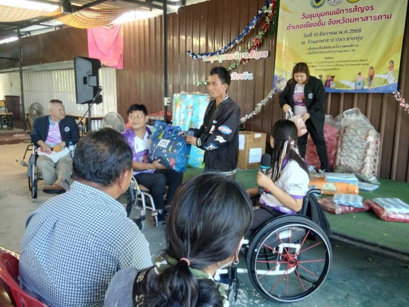 วันที่ 15 ธันวาคม 2568. งานสวัสดิการ นำคนพิการ จำนวน 10 ท่าน รับมอบของอุปโภค เครื่องนุ่งห่ม ที่เครือข่ายศูนย์ช่วยเหลือคนพิการ ต.เชียงยืน. จ.มหาสารคาม