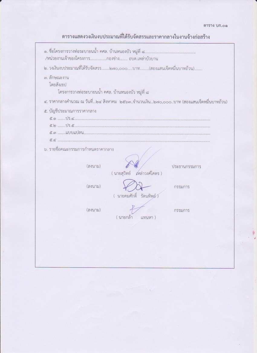 โครงการวางท่อระบายน้ำ คสล.บ้านหนองบัว หมู่ที่ 8