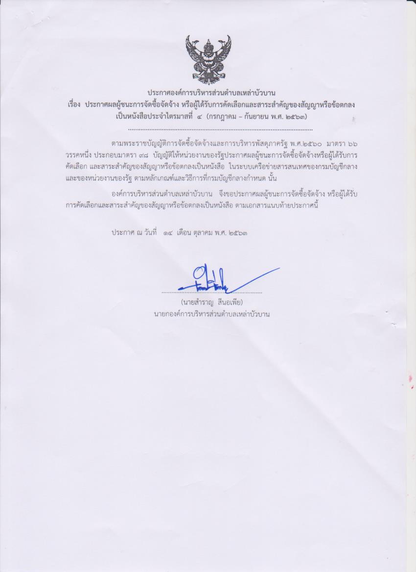 ประกาศผู้ชนะกรจัดซื้อจัดจ้าง ประจำไตรมาศที่ 4(กรกฎาคม-กันยายน 2563)