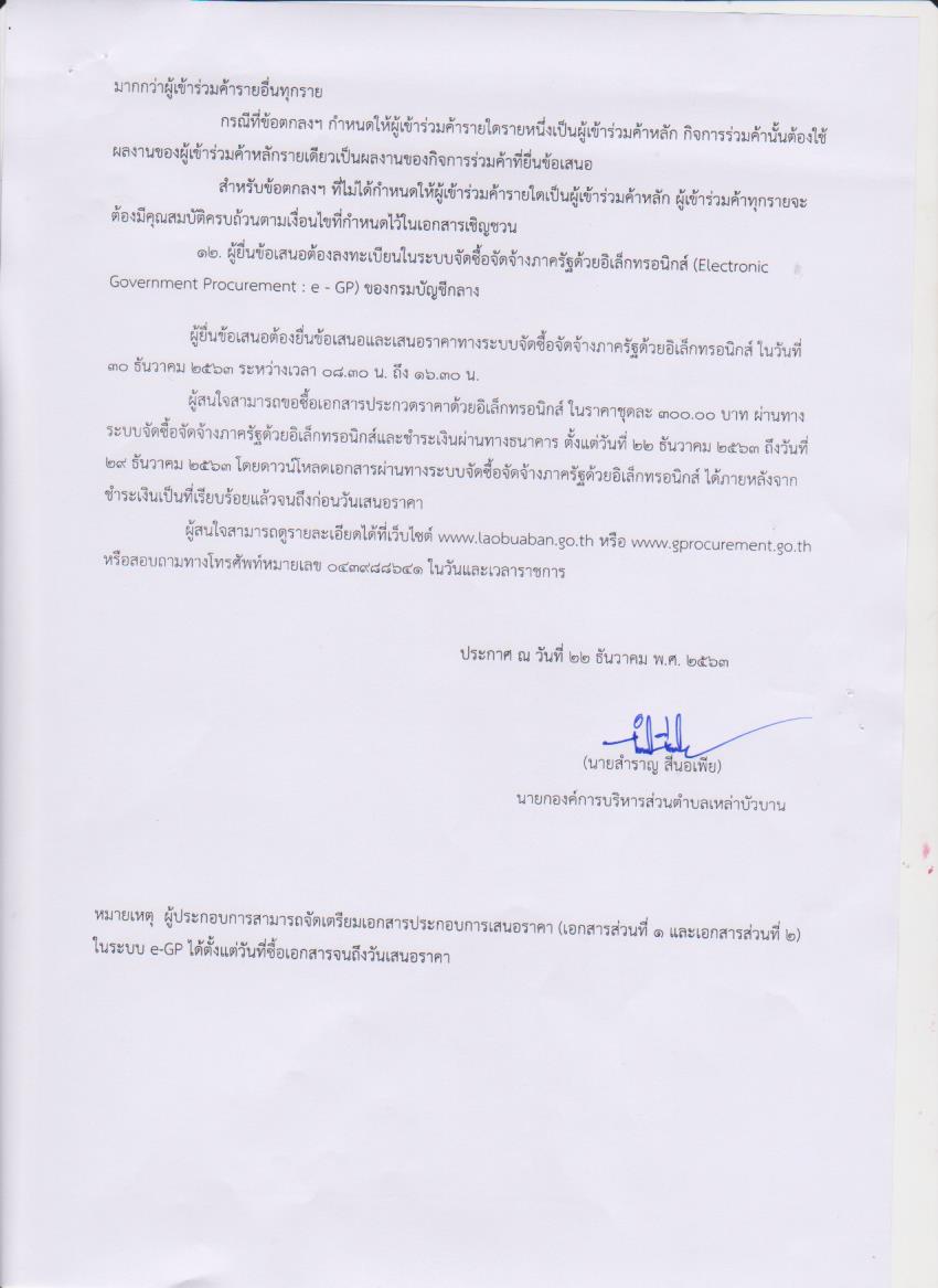 ประกาศโครงการก่สร้างถนนคอนกรีตเสริมเหล็ก สายบ้านหนองเดิ่น หมู่ที่ 7 ด้วยวิธีประกวดราคาอิเล็กทรอนิกส์ (e-bidding)